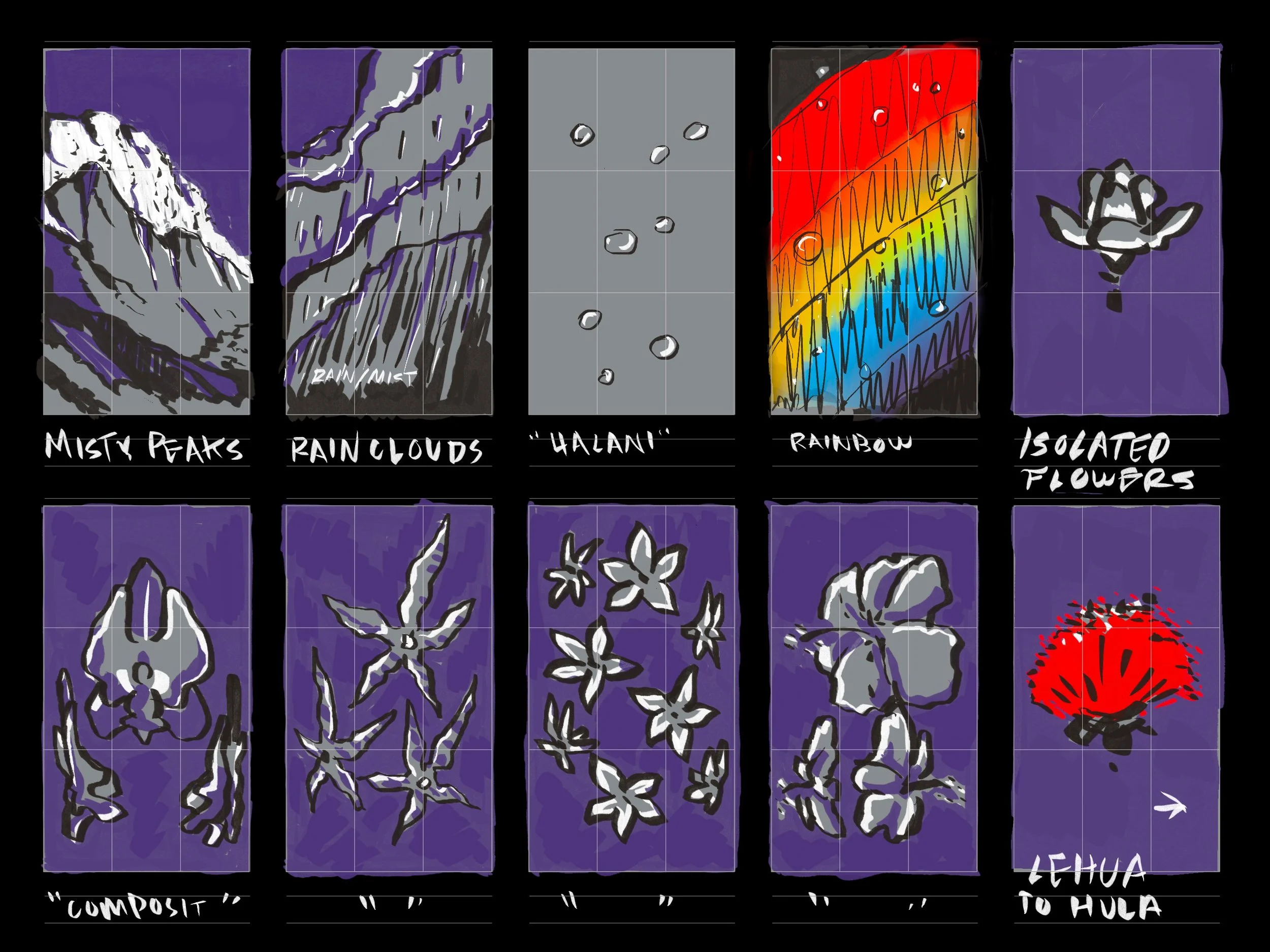 Kuʻu Pua is a video installation for the Light Monument at ʻAlohilani Resort, inspired by the mele "Kuʻu Pua I Paoakalani," written and composed by Queen Liliʻuokalani.